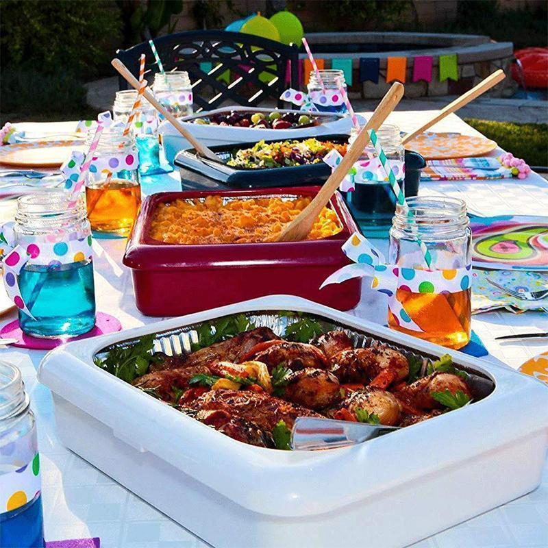 - Leaving the party early? Simply remove the foil pan from your Fancy Pans for the party-goers to continuing enjoying while you take your Fancy Pans home, No dirty dishes to bring home. Several colors are available to you.