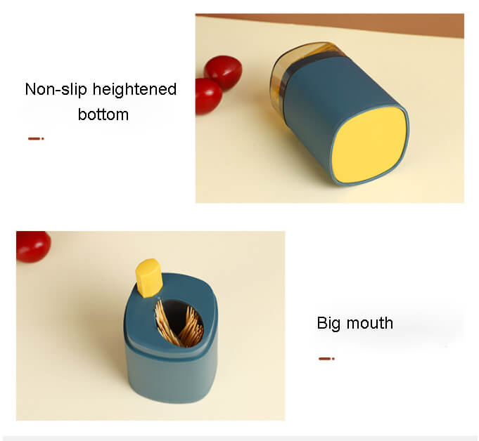 Transparent Lid & Big Mouth: Transparent closed lid, the remaining amount is clearly visible. And the lid can be removed for easier cleaning. The big mouth is designed for convenient to put toothpicks in and take them out.